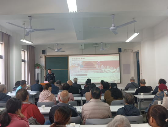周警官结合经侦工作实践,认真剖析了涉老诈骗的典型手段与新型变种,详解了识别骗局的核心要点,向现场群众给出"不轻信、不透露、不转账"的防骗口诀。同时他重点介绍了市公安局在打击涉老犯罪、推进"守住钱袋子-护好幸福家"专项行动中的举措与成效,增强了现场群众的安全信心。与会老年群众表示,本次讲座内容详实、案例生动,为老年人安享幸福晚年提供坚实的金融安全保障,以后遇到类似的投资理财项目将不再轻易相信高收益的承诺,避免陷入非法集资陷阱。