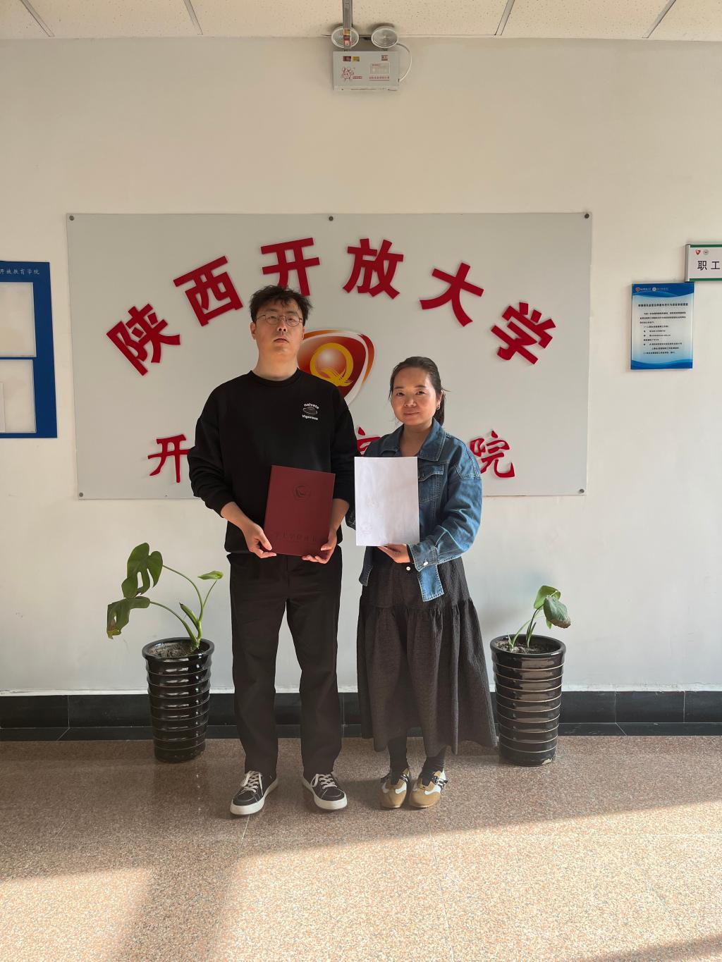 近日,陕西开放大学开放教育学院圆满完成了2025年秋季学期学士学位证书发放工作。依据《国家开放大学学士学位授予工作细则》,经过严格的材料审核与论文复审,我院两位本科学生王俊峰、朱益伟通过国家开放大学学位办终审并获得授予国家开放大学学士学位。学院领导对两位学员表示热烈祝贺,勉励他们以此为新的起点,在未来岗位上创造佳绩。